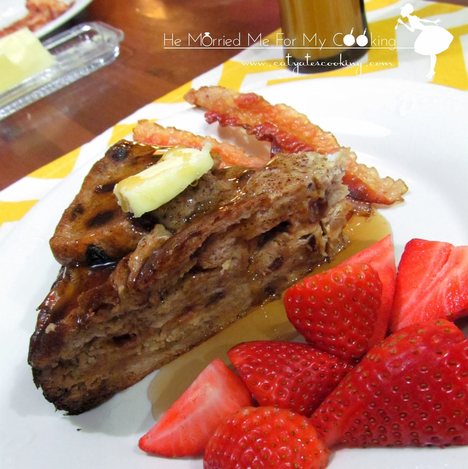 French Toast is a family favorite over here, so it was really a no brainer on what I was going to make. And when I found some cinnamon raisin bread on a price cut at the store, I knew I was going to use that to make the French Toast. A trick that I've learned when making French Toast is to mix your spices with the vanilla extract. If you do this, the spices will mix in better with the eggs.